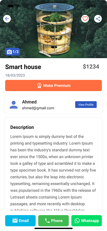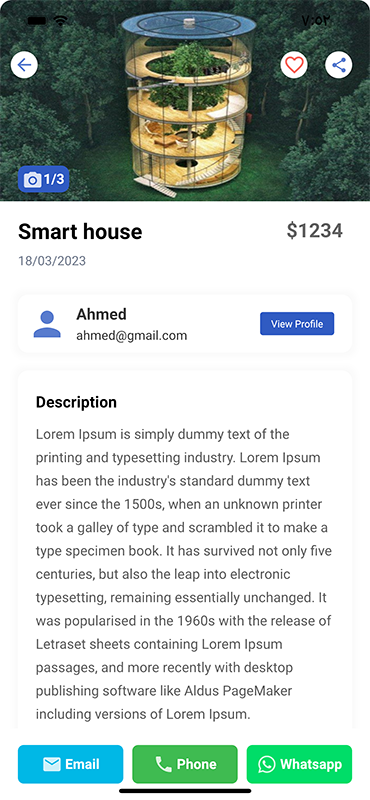 Connect seamlessly with other users using various communication methods in Lara Flutter app. Whether through WhatsApp, phone, or email, this feature facilitates smooth interactions, ensuring efficient and convenient communication.